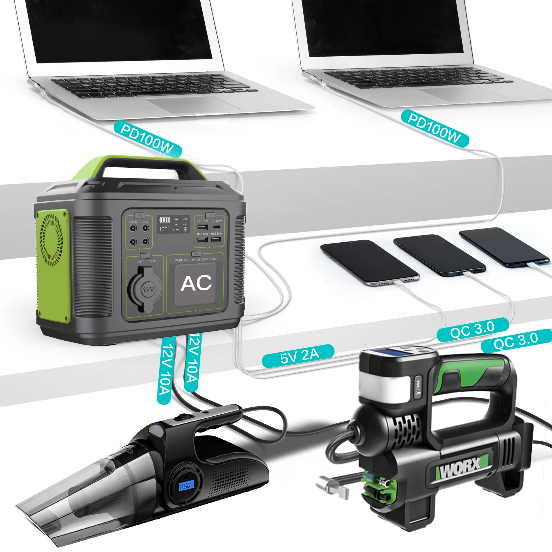 Green & clean lifepo4 Portable Power Station. You can use more than 6 kinds of devices together.